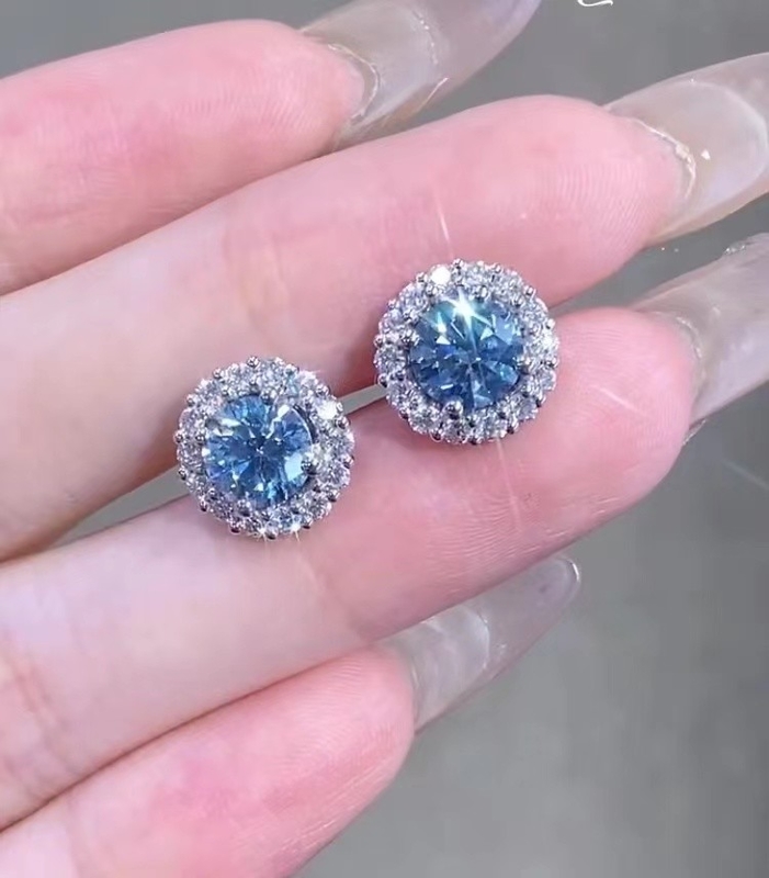 Εργαστήριο Διαμαντένια Κοσμήματα Μπλε Στρογγυλή Κόψη Αρραβωνιασμός Γάμος Ιδέες Φαντικά Διαμαντένια Πυραμίδια Ακουστικά.