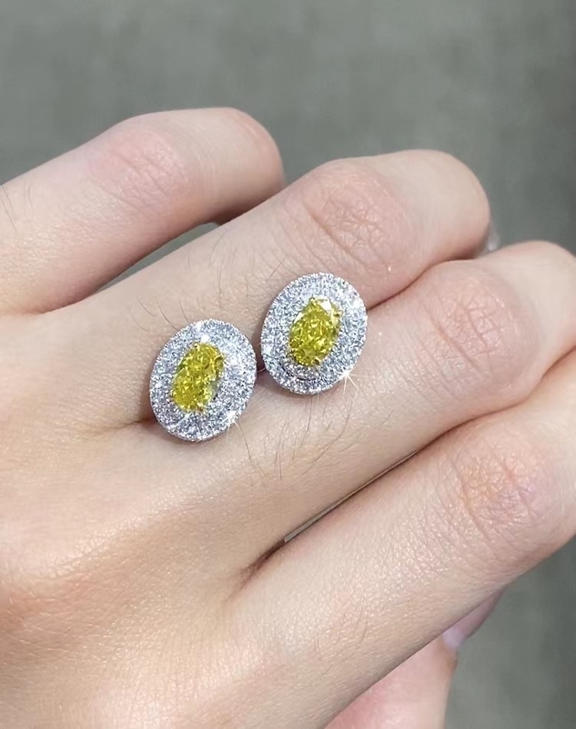 Εργαστήριο Διαμάντι Κοσμήματα Διαμάντι Πυραμίδια Ακουστικά Οβάλ Brilliant Cut Καλλιεργημένα Κίτρινα Διαμάντια Παραγωγή κοσμημάτων